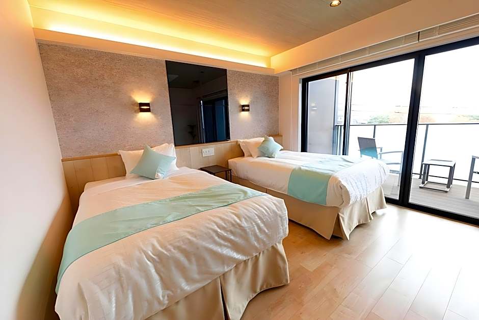 This twin room's standout features are the pool with a view, hot tub and private open-air bath. The spacious twin room features air conditioning, a tea and coffee maker, a terrace with sea views as well as a private bathroom boasting a walk-in shower. The unit has 2 beds.